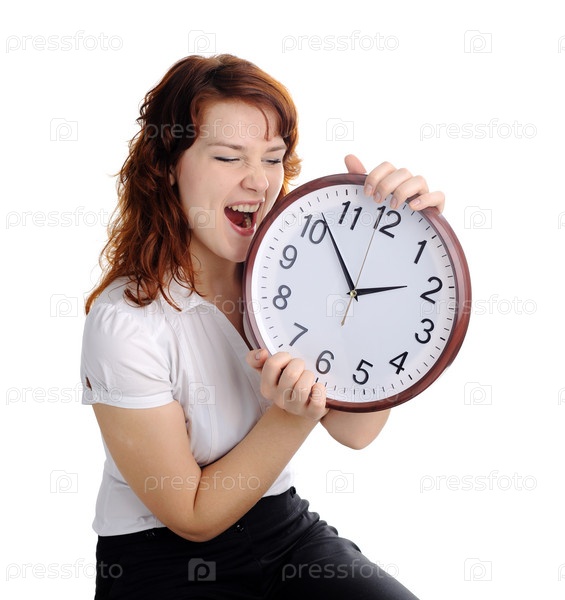 Молодая женщина с большими часами