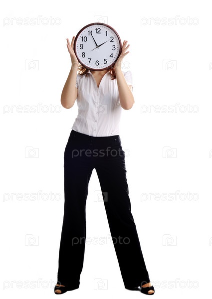 Молодая женщина с большими часами