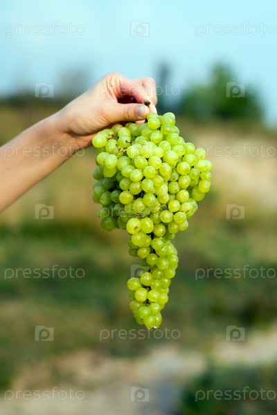 Гроздь зеленого винограда в руке