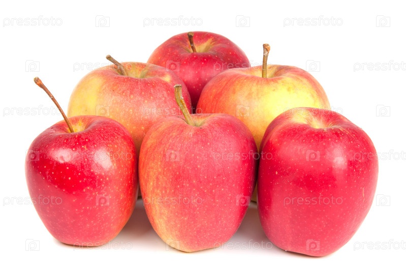 Спелые красные яблоки на белом фоне