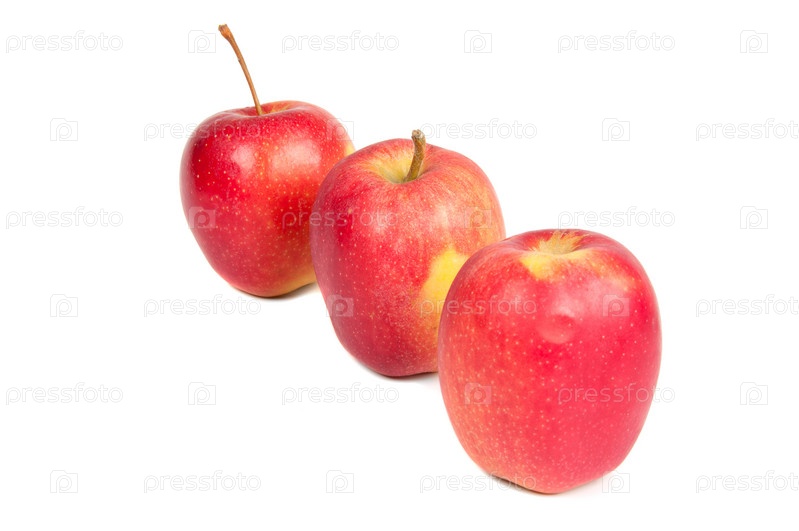 Спелые красные яблоки на белом фоне