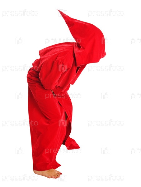 Человек в страшном красном костюме с капюшоном