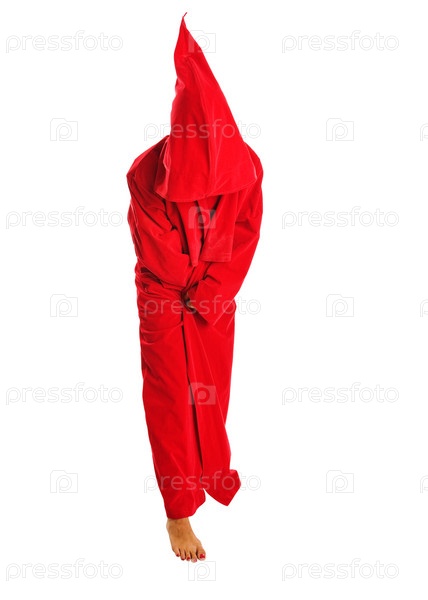 Человек в страшном красном костюме с капюшоном