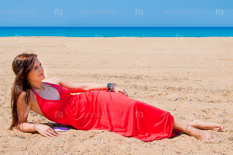 Портрет молодой и красивой женщины, отдыхающей на морском побережье