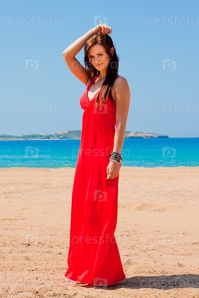 Портрет молодой и красивой женщины, отдыхающей на морском побережье