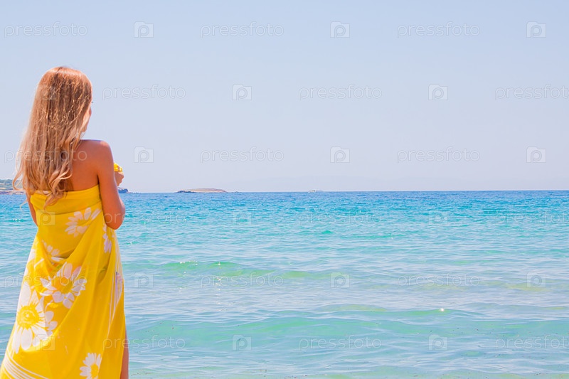 Портрет молодой и красивой женщины, отдыхающей на морском побережье