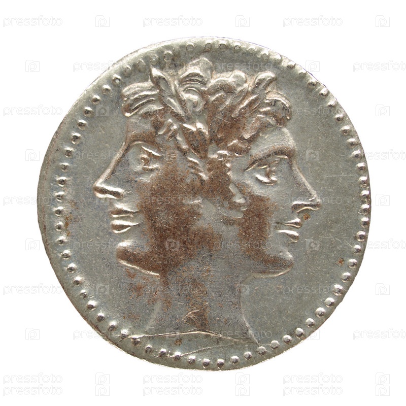 Древняя римская монета, изолирована на белом фоне