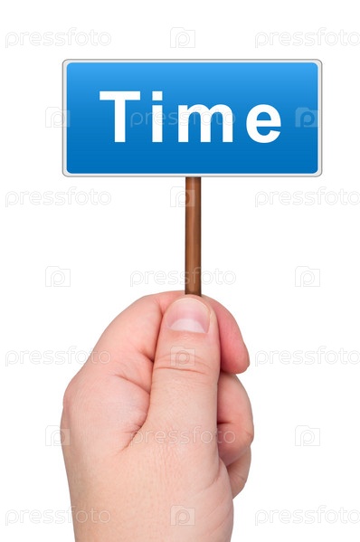 Табличка с надписью "время" на белом фоне