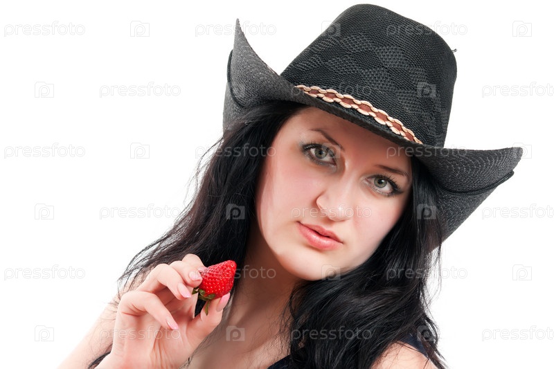 Девушка в ковбойской шляпе с клубникой