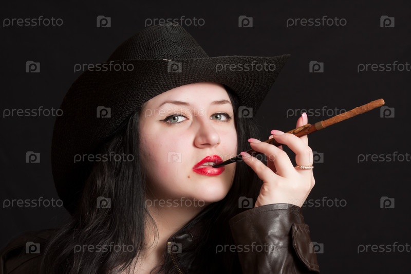 Девушка в ковбойской шляпе с курительной трубкой