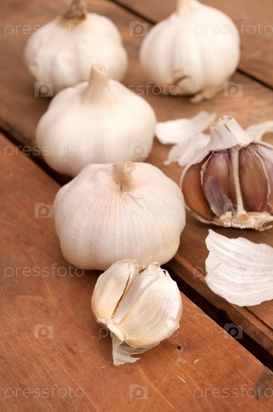 Чеснок на деревянном столе