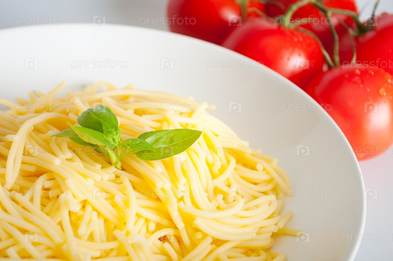 Спагетти с базиликом и свежие помидоры