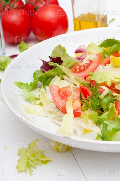 Салат со свежими овощами на белом фоне
