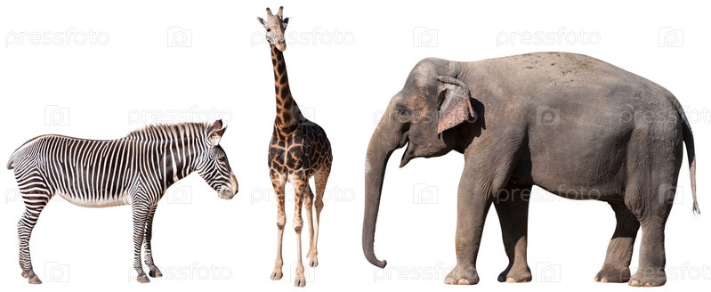 Зебра, жираф и слон