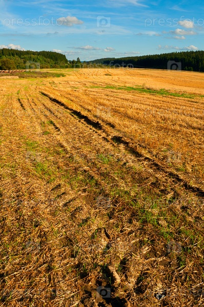 Сельский пейзаж - поле и голубое небо