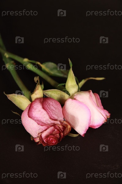 Две увядшие розы на черном фоне