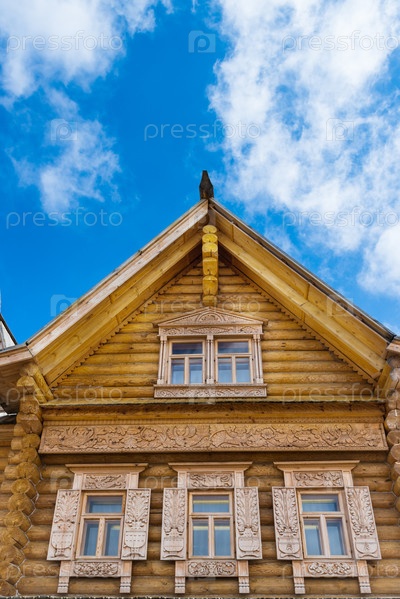 Декорированные окна деревянного дома, российская традиционная архитектура