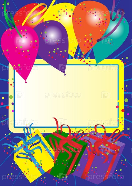 Открытка с воздушными шарами и подарочными коробками