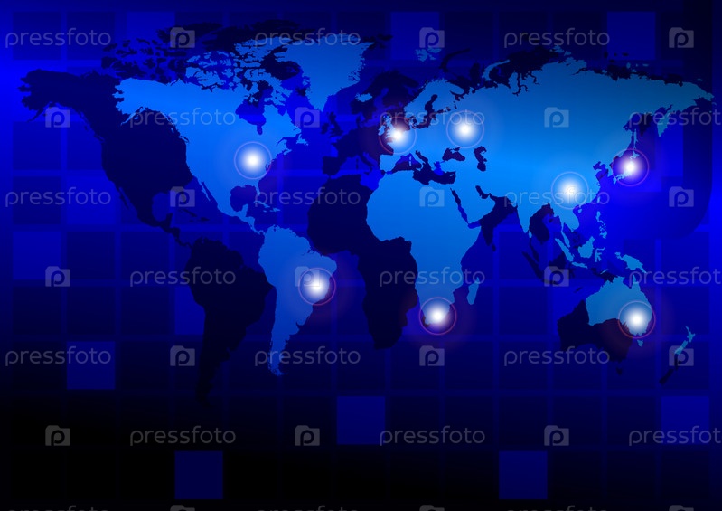 Синий абстрактный фон с картой мира