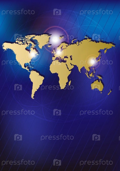 Золотая карта мира на синем фоне