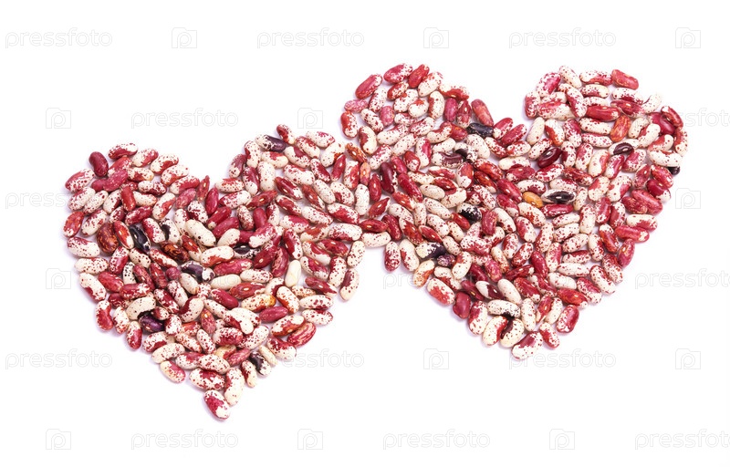 Два сердца из фасоли на белом фоне