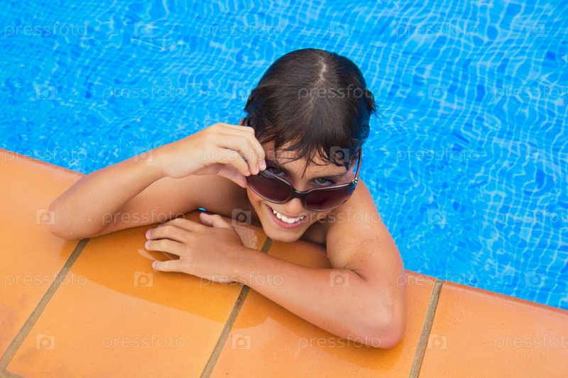 Улыбающийся подросток у бортика бассейна