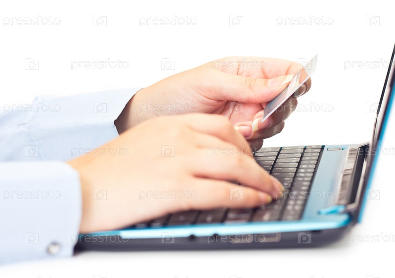 Женские руки, набирающие номер кредитной карты на клавиатуре