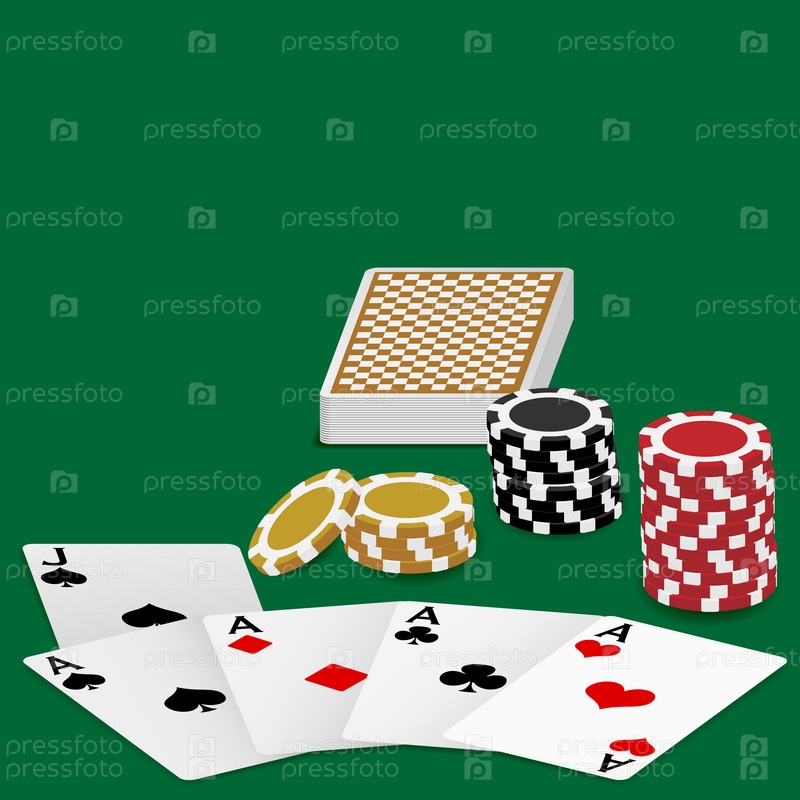 Четыре туза и фишки для покера на зеленом фоне
