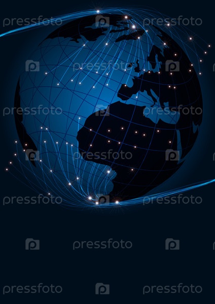 Оптические волокна и глобус на синем фоне