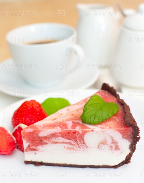 Клубничный чизкейк и эспрессо на столе