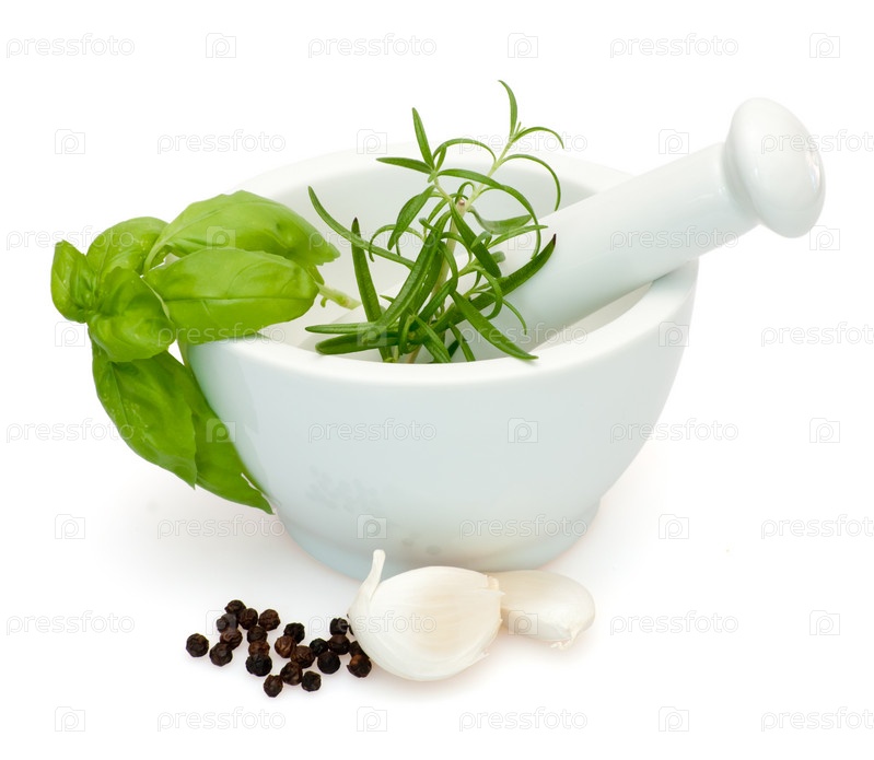 Соль, розмарин, базилик, чеснок и перец