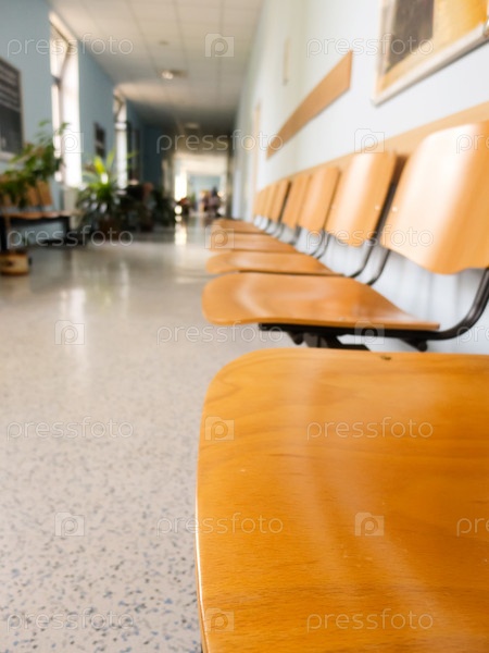 Деревянные стулья в зале ожидания больницы