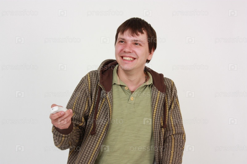 Парень с пультом на белом фоне