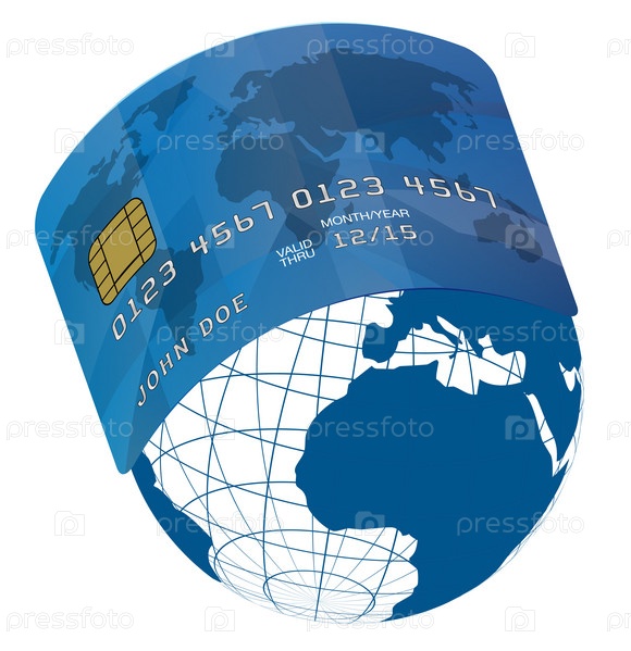 Синяя кредитная карта на синем глобусе