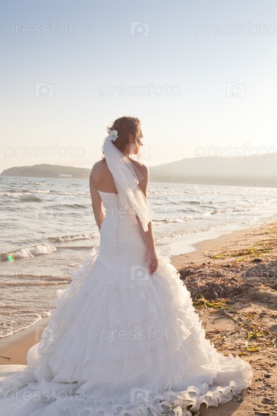 Невеста в свадебном платье на пляже