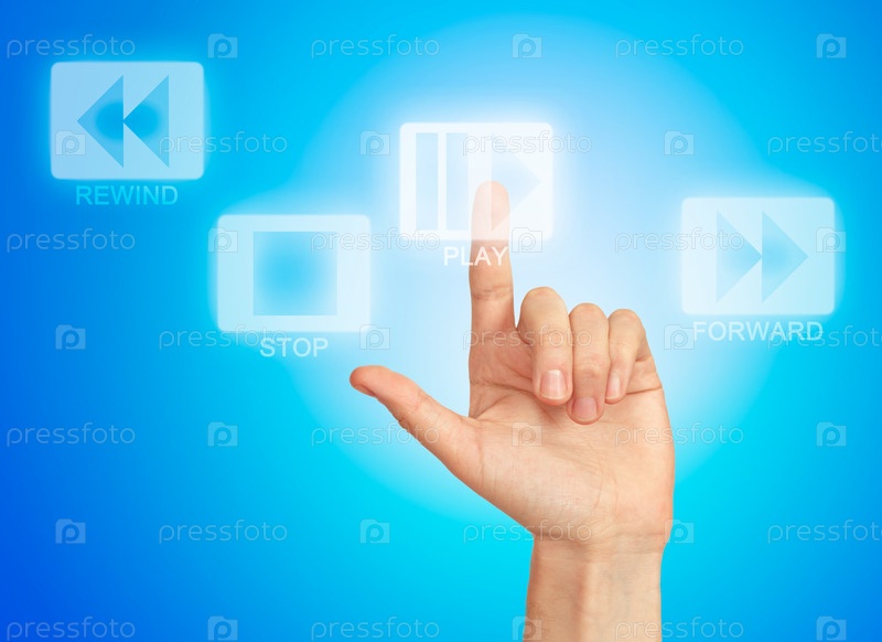 Нажатие пальцем на виртуальную кнопку с надписью 'play'