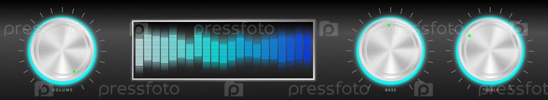Черный усилитель с серебряными ручками и синим эквалайзером