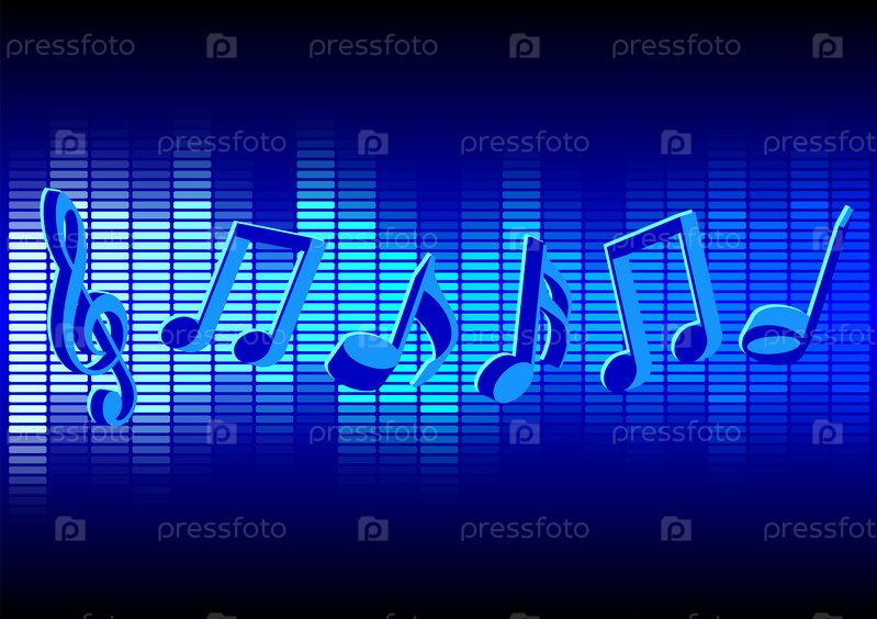 Музыкальный фон с нотами и синим графическим эквалайзером
