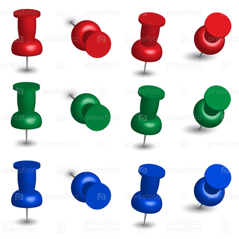 Набор красных, зеленых и синих канцелярских кнопок