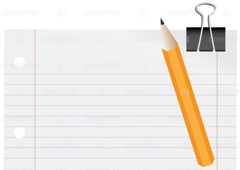 Канцелярские товары. Чистый лист бумаги, карандаш и скрепка