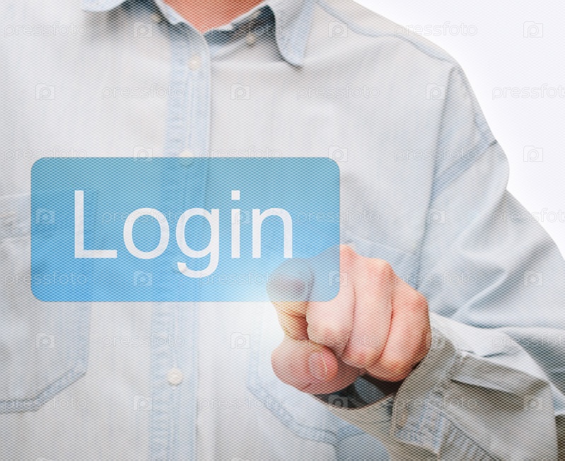 Мужская рука нажимает кнопку входа на сенсорном экране