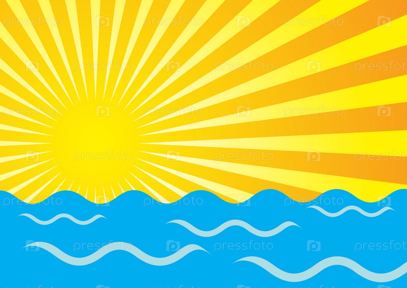 Абстрактный оранжево-желтый летний фон с солнечными лучами и волнами