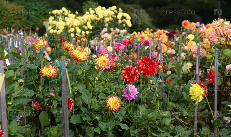 Различные виды дольчатых георгинов в саду
