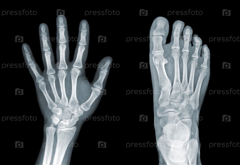 Рентген руки и ноги на черном фоне