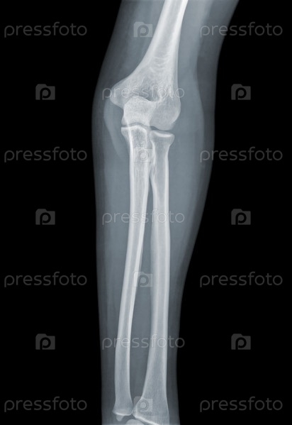 Рентгеновский снимок локтя на черном фоне
