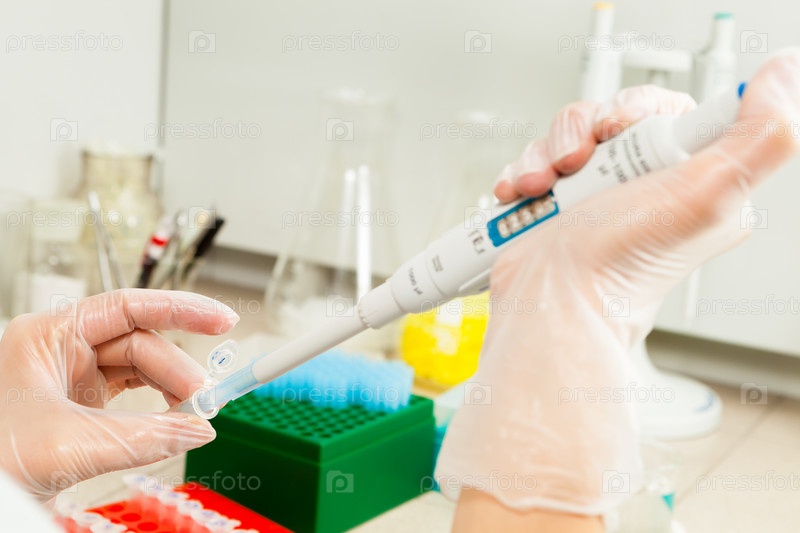Исследователь берет пробу биологического образца