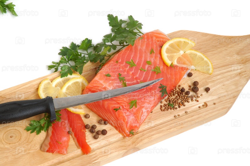 Сырое филе лосося на деревянной доске