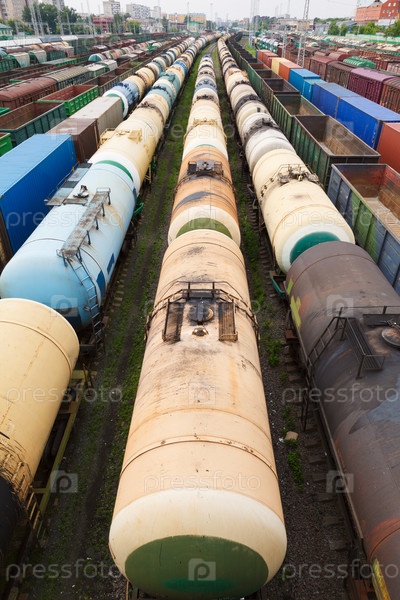 Грузовые вагоны на железнодорожной станции