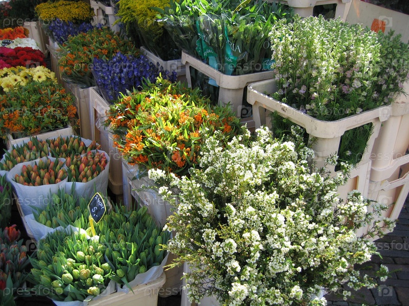 Цветы на цветочном рынке в городе Харлем, Голландия