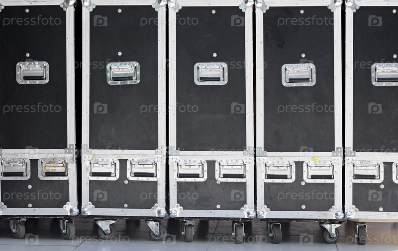 Ряд мобильных контейнеров для перевозки концертного оборудования